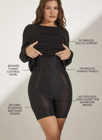 Onze populaire shapewearjurk heeft nu lange mouwen voor een slank en verfijnd silhouet.